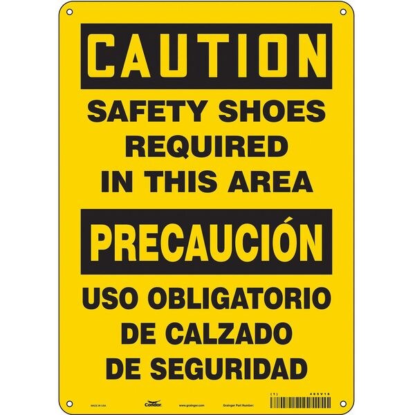 Safety Sign, Vertical Rectangle, Number of Printed Sides 1, English, Spanish, Sign Format Traditional OSHA, Sign Legend Safety Shoes Required In This Area/Uso Obligatorio De Calzado De Sequridad, Sign Legend Background Color Yellow, Sign Legend Style Text