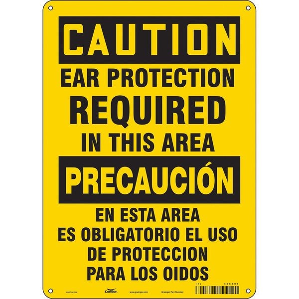 Safety Sign, Vertical Rectangle, Number of Printed Sides 1, English, Spanish, Sign Format Traditional OSHA, Sign Legend Ear Protection Required In This Area/En Esta Area Es Obligatorio El Uso De Proteccion Para Los Oidos, Sign Legend Background Color Yellow, Sign Legend Style Text