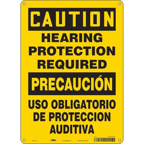 Safety Sign, Vertical Rectangle, Number of Printed Sides 1, English, Spanish, Sign Format Traditional OSHA, Sign Legend Hearing Protection Required/Uso Obligatorio De Proteccion Auditiva, Sign Legend Background Color Yellow, Sign Legend Style Text