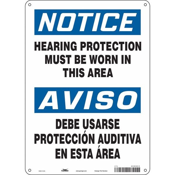 Safety Sign, Vertical Rectangle, Number of Printed Sides 1, English, Spanish, Sign Format Traditional OSHA, Sign Legend Hearing Protection Must Be Worn In This Area/Debe Usarse Proteccion Auditiva Enesta Area, Sign Legend Background Color White, Sign Legend Style Text