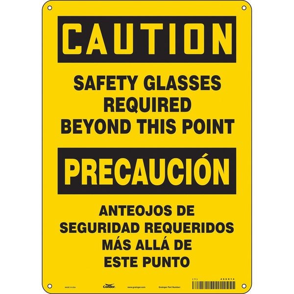 Safety Sign, Vertical Rectangle, Number of Printed Sides 1, English, Spanish, Sign Format Traditional OSHA, Sign Legend Safety Glasses Required Beyond This Point/Anteojos De Seqguridad Requieridos Mas Alla De Este Punto, Sign Legend Background Color Yellow, Sign Legend Style Text