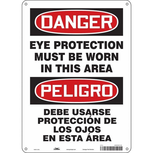 Safety Sign, Vertical Rectangle, Number of Printed Sides 1, English, Spanish, Sign Format Traditional OSHA, Sign Legend Eye Protection Must Be Worn In This Area/Debe Usarse Proteccion De Los Ojos En Esta Area, Sign Legend Background Color White, Sign Legend Style Text