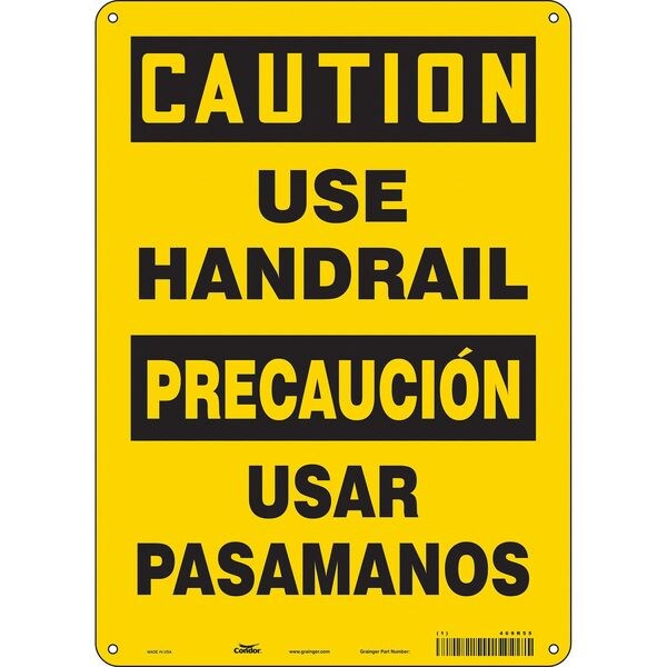 Safety Sign, Vertical Rectangle, Number of Printed Sides 1, English, Spanish, Sign Format Traditional OSHA, Sign Legend Use Handrail/Usar El Pasamanos, Sign Legend Background Color Yellow, Sign Legend Style Text