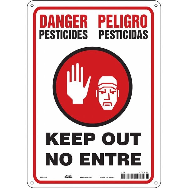 Safety Sign, Vertical Rectangle, Number of Printed Sides 1, English, Spanish, Sign Format Other Format, Sign Legend Danger Pesticides Keep Out Peligro Pesticidas No Entre, Sign Legend Background Color White, Sign Legend Style Symbol and Text