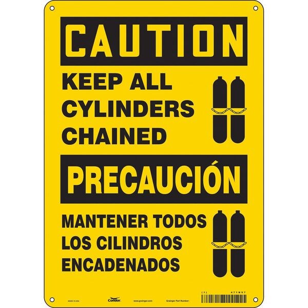 Safety Sign, Vertical Rectangle, Number of Printed Sides 1, English, Spanish, Sign Format Traditional OSHA, Sign Legend Keep All Cylinders Chained/Mantener Todos Los Cilindros Encadenados, Sign Legend Background Color Yellow, Sign Legend Style Symbol and Text