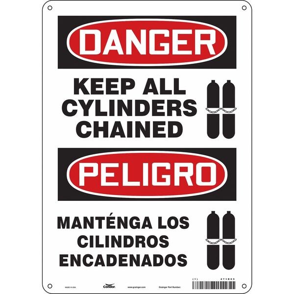 Safety Sign, Vertical Rectangle, Number of Printed Sides 1, English, Spanish, Sign Format Traditional OSHA, Sign Legend Keep All Cylinders Chained/Mantenga Los Cilindros Encadenados, Sign Legend Background Color White, Sign Legend Style Symbol and Text