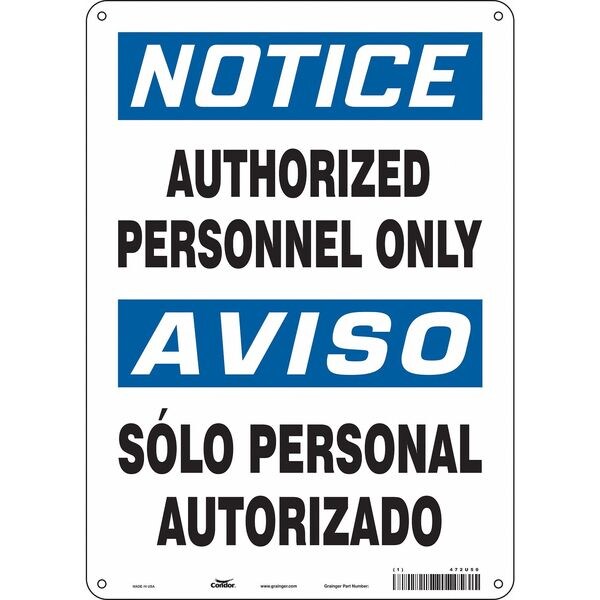 Safety Sign, Vertical Rectangle, Number of Printed Sides 1, English, Spanish, Sign Format Traditional OSHA, Sign Legend Authorized Personnel Only/Solo Personal Autorizado, Sign Legend Background Color White, Sign Legend Style Text