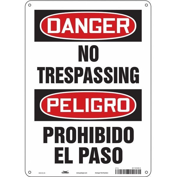 Safety Sign, Vertical Rectangle, Number of Printed Sides 1, English, Spanish, Sign Format Traditional OSHA, Sign Legend No Trespassing/Prohibido El Paso, Sign Legend Background Color White, Sign Legend Style Text