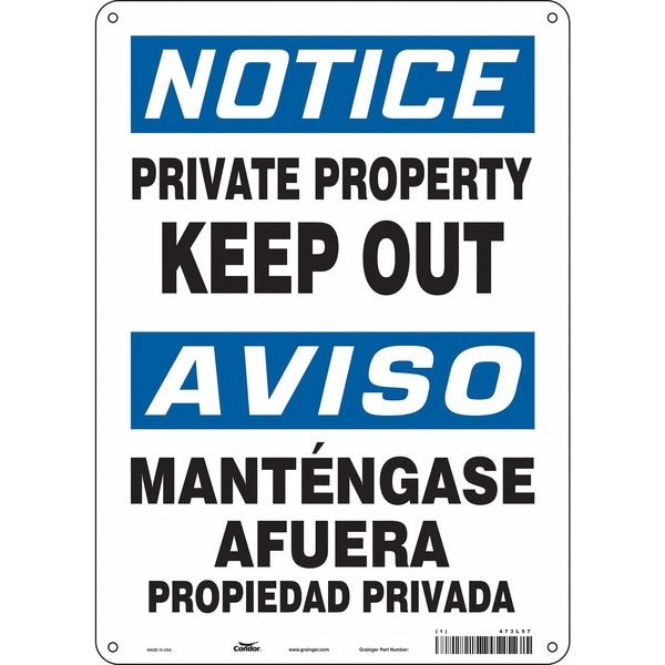 Safety Sign, Vertical Rectangle, Number of Printed Sides 1, English, Spanish, Sign Format Traditional OSHA, Sign Legend Private Property Keep Out/Prohibido El Paso Propiedad Privada, Sign Legend Background Color White, Sign Legend Style Text