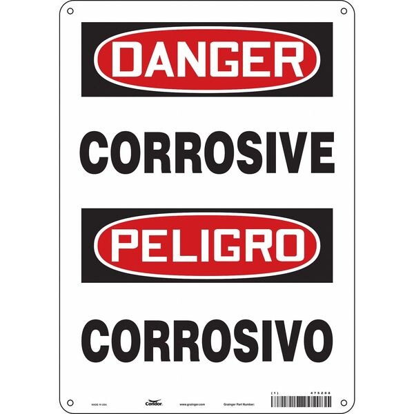 Safety Sign, Vertical Rectangle, Number of Printed Sides 1, English, Spanish, Sign Format Traditional OSHA, Sign Legend Corrosive/Corrosivo, Sign Legend Background Color White, Sign Legend Style Text