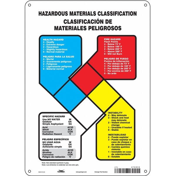 NFPA Label, Adhesive Non-Adhesive, Adhesive Material Not Applicable, Adhesive Properties Non-Adhesive, Background Color Blue/Red/White/Yellow, Hazard Communication Standard ANSI/ NFPA, Height 14 in, Kit Contents Not Applicable, Lamination Type Laminated, Language English, Spanish, Material Polyethylene, Material Properties Rigid, Maximum Service Temperature 160 Degrees F, Minimum Service Temperature -20 Degrees F, Mounting Type Mounting Holes, Package Type Each, Preprinted Images NFPA Diamond