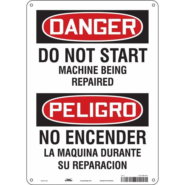 Safety Sign, Vertical Rectangle, Number of Printed Sides 1, English, Spanish, Sign Format Traditional OSHA, Sign Legend Do Not Start Machine Being Repaired/No Encender La Maquina Mientras Este En Reparacion, Sign Legend Background Color White, Sign Legend Style Text