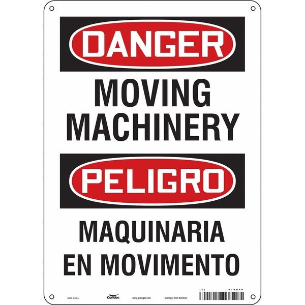 Safety Sign, Vertical Rectangle, Number of Printed Sides 1, English, Spanish, Sign Format Traditional OSHA, Sign Legend Moving Machinery/Maquinaria En Movimiento, Sign Legend Background Color White, Sign Legend Style Text