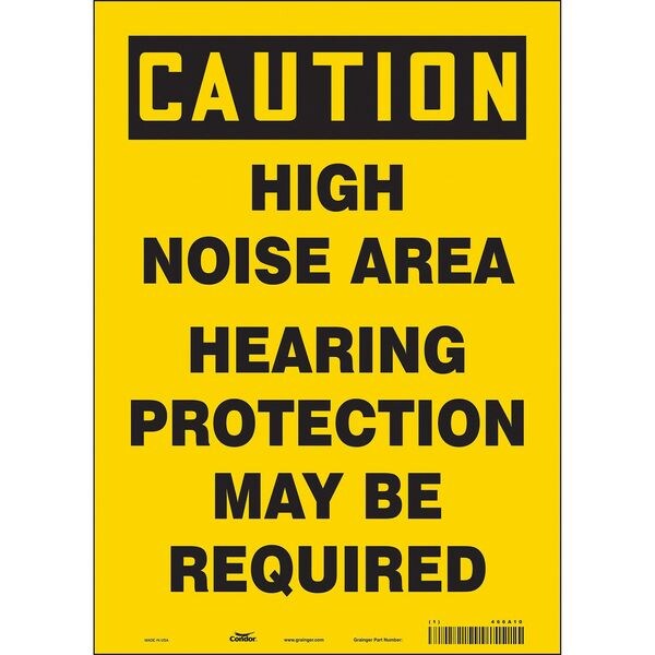 Safety Sign, Vertical Rectangle, Number of Printed Sides 1, English, Sign Format Traditional OSHA, Sign Legend High Noise Area Hearing Protection May Be Required, Sign Legend Background Color Yellow, Sign Legend Style Text
