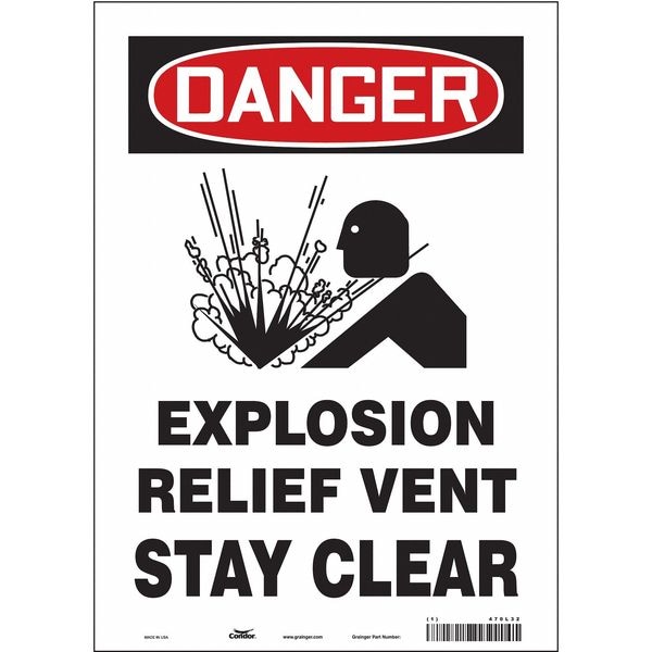 Safety Sign, Vertical Rectangle, Number of Printed Sides 1, English, Sign Legend Explosion Relief Vent Stay Clear, Sign Legend Background Color White, Sign Legend Style Symbol and Text