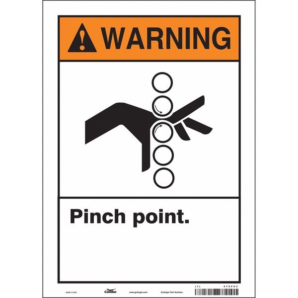 Safety Sign, Vertical Rectangle, Number of Printed Sides 1, English, Sign Format ANSI/OSHA Format, Sign Legend Pinch Point., Sign Legend Background Color White, Sign Legend Style Symbol and Text