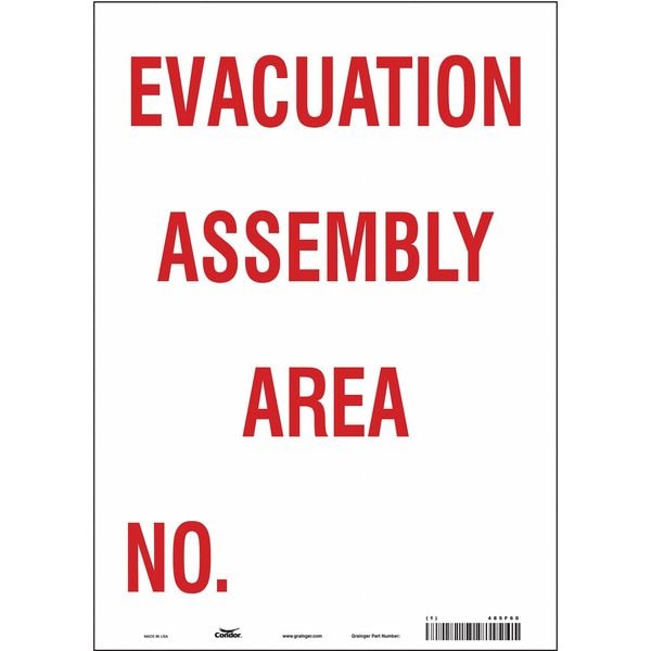 Safety Sign, Vertical Rectangle, Number of Printed Sides 1, English, Sign Format Other Format, Sign Legend Evacuation Assembly Area No., Sign Legend Background Color White, Sign Legend Style Text