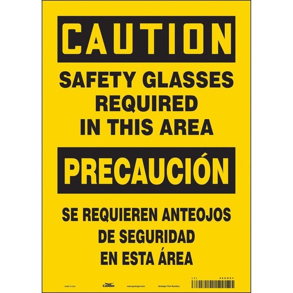 Safety Sign, Vertical Rectangle, Number of Printed Sides 1, English, Spanish, Sign Format Traditional OSHA, Sign Legend Safety Glasses Required In This Area/Se Requieren Anteojos De Seguridad En Esta Area, Sign Legend Background Color Yellow, Sign Legend Style Text