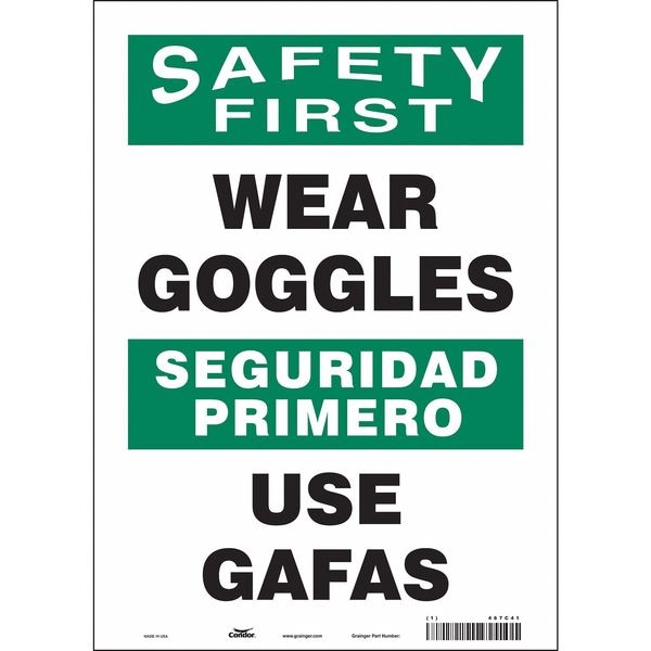 Safety Sign, Vertical Rectangle, Number of Printed Sides 1, English, Spanish, Sign Format Traditional OSHA, Sign Legend Wear Goggles/Use Gafas, Sign Legend Background Color White, Sign Legend Style Text