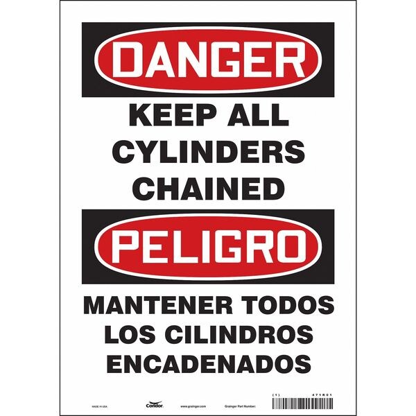 Safety Sign, Vertical Rectangle, Number of Printed Sides 1, English, Spanish, Sign Format Traditional OSHA, Sign Legend Keep All Cylinders Chained/Mantener Todos Los Cilindros Encadenados, Sign Legend Background Color White, Sign Legend Style Text
