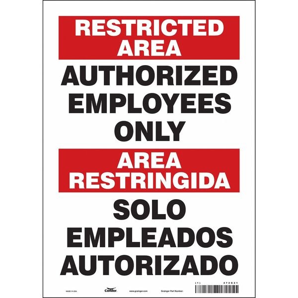 Safety Sign, Vertical Rectangle, Number of Printed Sides 1, English, Spanish, Sign Format Other Format, Sign Legend Authorized Employees Only/Solo Empleados Autorizados, Sign Legend Background Color Red, White, Sign Legend Style Text