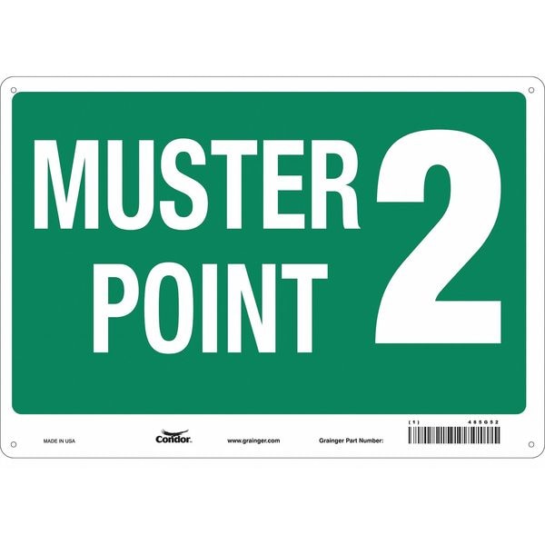 Safety Sign, Horizontal Rectangle, Number of Printed Sides 1, English, Sign Legend Muster Point 2, Sign Legend Background Color Green, Sign Legend Style Text