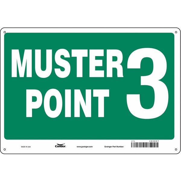 Safety Sign, Horizontal Rectangle, Number of Printed Sides 1, English, Sign Legend Muster Point 3, Sign Legend Background Color Green, Sign Legend Style Text