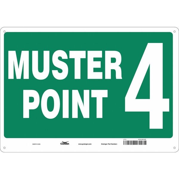 Safety Sign, Horizontal Rectangle, Number of Printed Sides 1, English, Sign Legend Muster Point 4, Sign Legend Background Color Green, Sign Legend Style Text