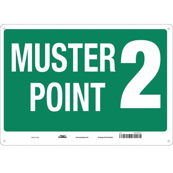 Safety Sign, Horizontal Rectangle, Number of Printed Sides 1, English, Sign Format Other Format, Sign Legend Muster Point 2, Sign Legend Background Color Green, Sign Legend Style Text