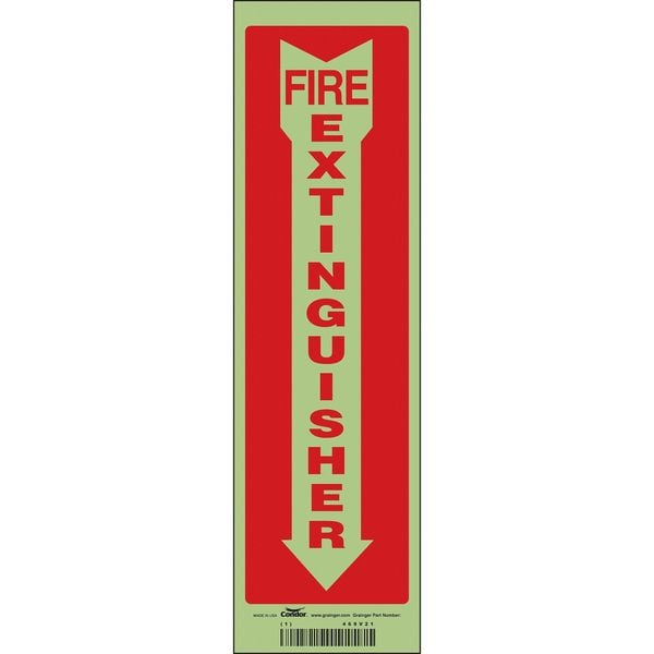 Safety Sign, Horizontal Rectangle, Number of Printed Sides 1, English, Sign Legend Fire Extinguisher, Sign Legend Background Color Red, White, Sign Legend Style Symbol and Text