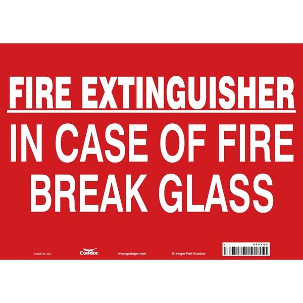 Safety Sign, Horizontal Rectangle, Number of Printed Sides 1, English, Sign Format Other Format, Sign Legend Fire Extinguisher In Case Of Fire Break Glass, Sign Legend Background Color Red, White, Sign Legend Style Text