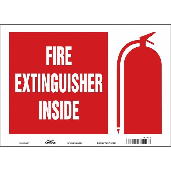 Safety Sign, Horizontal Rectangle, Number of Printed Sides 1, English, Sign Format Other Format, Sign Legend Fire Extinguisher Inside, Sign Legend Background Color Red, White, Sign Legend Style Symbol and Text
