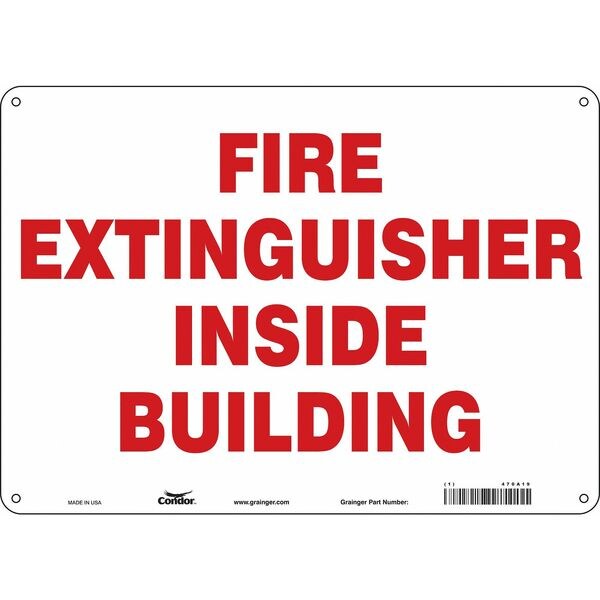 Safety Sign, Horizontal Rectangle, Number of Printed Sides 1, English, Sign Legend Fire Extinguisher Inside Building, Sign Legend Background Color White, Sign Legend Style Text