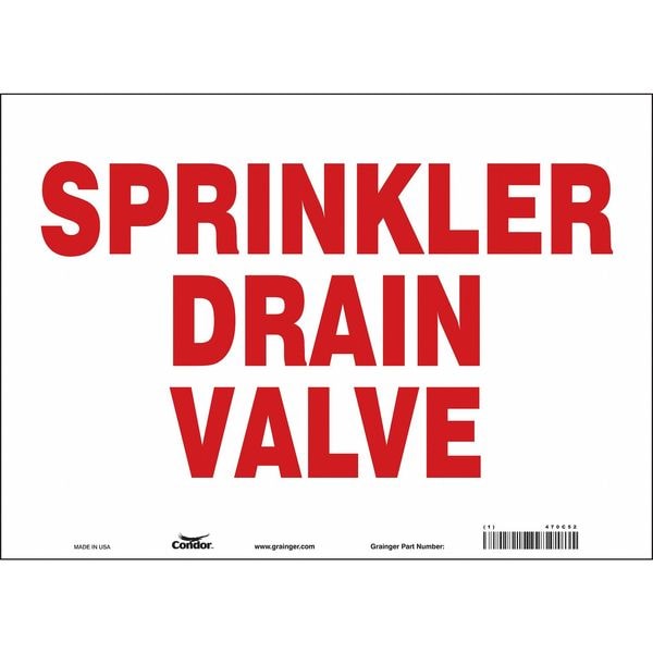 Safety Sign, Horizontal Rectangle, Number of Printed Sides 1, English, Sign Format Other Format, Sign Legend Sprinkler Drain Valve, Sign Legend Background Color White, Sign Legend Style Text