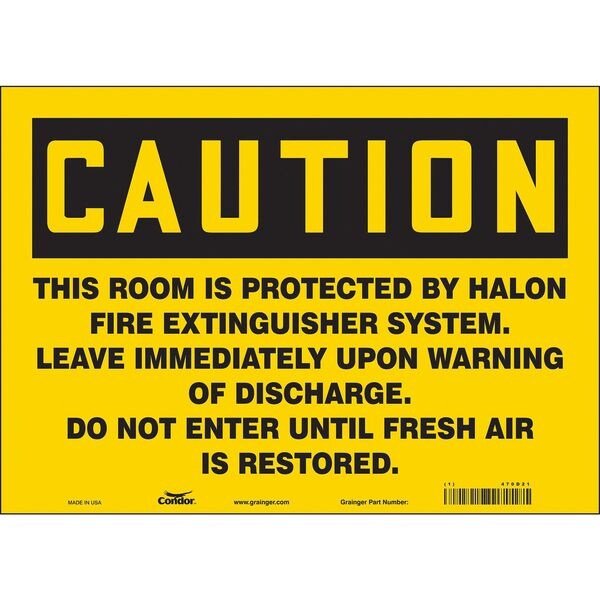 Safety Sign, Horizontal Rectangle, Number of Printed Sides 1, English, Sign Legend This Room Is Protected By Halon Fire Extinguisher, Sign Legend Background Color Yellow, Sign Legend Style Text