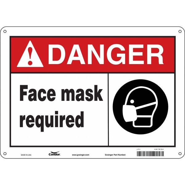 Safety Sign, Horizontal Rectangle, Number of Printed Sides 1, English, Sign Format ANSI/OSHA Format, Sign Legend Face Mask Required, Sign Legend Background Color White, Sign Legend Style Symbol and Text