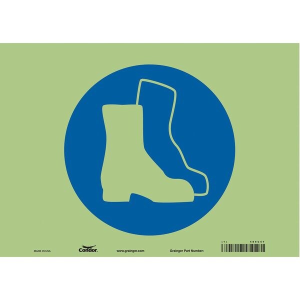 Safety Sign, Horizontal Rectangle, Number of Printed Sides 1, English, Sign Format Other Format, Sign Legend Foot Protection Symbol, Sign Legend Background Color White, Sign Legend Style Symbol
