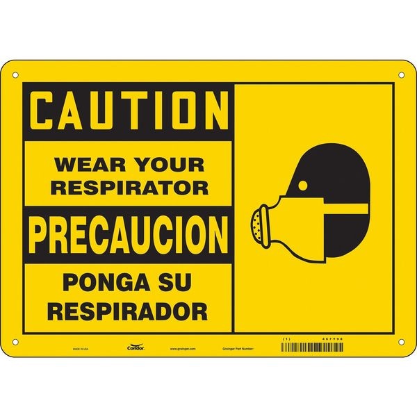 Safety Sign, Horizontal Rectangle, Number of Printed Sides 1, English, Spanish, Sign Format Traditional OSHA, Sign Legend Wear Your Respirator/Ponga Su Respirador, Sign Legend Background Color Yellow, Sign Legend Style Symbol and Text