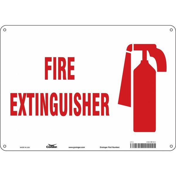Safety Sign, Horizontal Rectangle, Number of Printed Sides 1, English, Sign Legend Fire Extinguisher, Sign Legend Background Color White, Sign Legend Style Symbol and Text