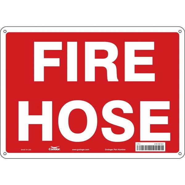Safety Sign, Horizontal Rectangle, Number of Printed Sides 1, English, Sign Format Other Format, Sign Legend Fire Hose, Sign Legend Background Color Red, White, Sign Legend Style Text