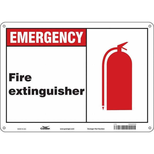 Safety Sign, Horizontal Rectangle, Number of Printed Sides 1, English, Sign Format Other Format, Sign Legend Emergency Fire Extinguisher, Sign Legend Background Color Red, White, Sign Legend Style Symbol and Text