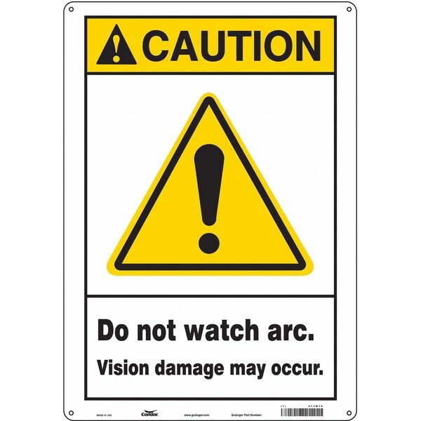 Safety Sign, Vertical Rectangle, Number of Printed Sides 1, English, Sign Format ANSI/OSHA Format, Sign Legend Do Not Watch Arc. Vision Damage May Occur., Sign Legend Background Color White, Sign Legend Style Symbol and Text