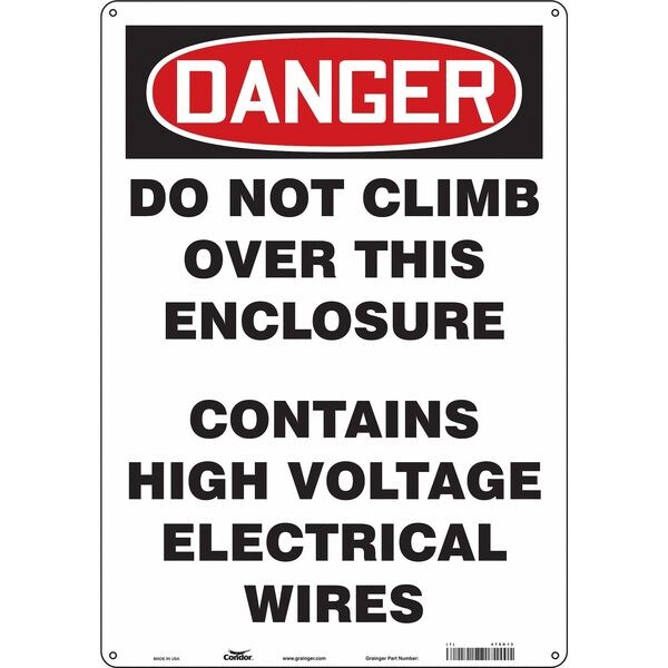 Safety Sign, Vertical Rectangle, Number of Printed Sides 1, English, Sign Format Traditional OSHA, Sign Legend Do Not Climb Over This Enclosure Contains High Voltage Electrical Wires, Sign Legend Background Color White, Sign Legend Style Text