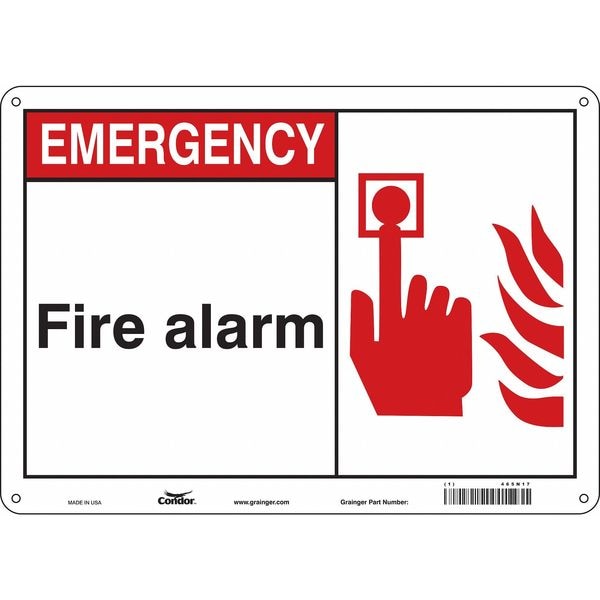 Safety Sign, Horizontal Rectangle, Number of Printed Sides 1, English, Sign Format Other Format, Sign Legend Emergency Fire Alarm, Sign Legend Background Color Red, White, Sign Legend Style Symbol and Text