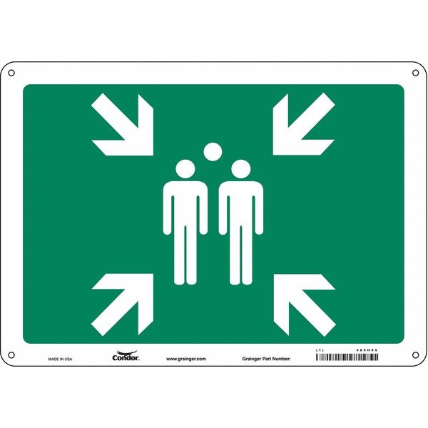 Safety Sign, Horizontal Rectangle, Number of Printed Sides 1, English, Sign Format Other Format, Sign Legend Assembly Area Symbol, Sign Legend Background Color Green, Sign Legend Style Symbol