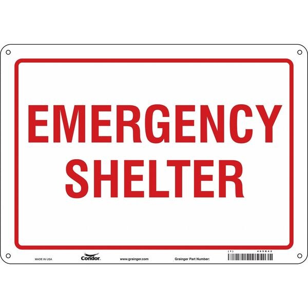 Safety Sign, Horizontal Rectangle, Number of Printed Sides 1, English, Sign Format Other Format, Sign Legend Emergency Shelter, Sign Legend Background Color White, Sign Legend Style Text
