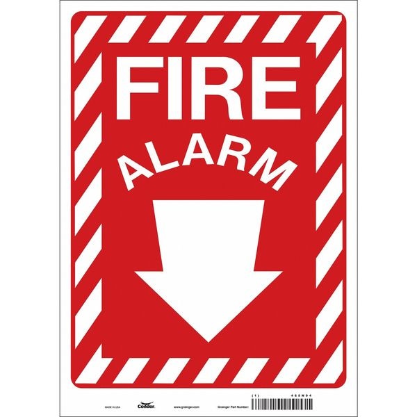Safety Sign, Vertical Rectangle, Number of Printed Sides 1, English, Sign Legend Fire Alarm, Sign Legend Background Color Red, White, Sign Legend Style Symbol and Text