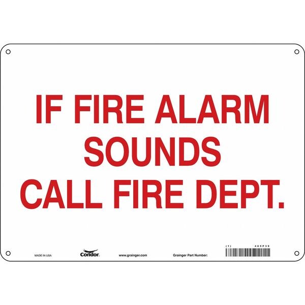 Safety Sign, Horizontal Rectangle, Number of Printed Sides 1, English, Sign Format Other Format, Sign Legend If Fire Alarm Sounds Call Fire Dept., Sign Legend Background Color White, Sign Legend Style Text