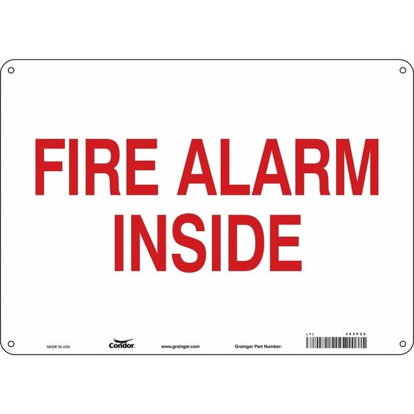 Safety Sign, Horizontal Rectangle, Number of Printed Sides 1, English, Sign Format Other Format, Sign Legend Fire Alarm Inside, Sign Legend Background Color White, Sign Legend Style Text