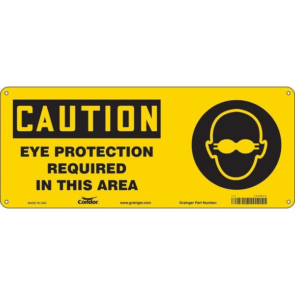 Safety Sign, Vertical Rectangle, Number of Printed Sides 1, English, Sign Format Traditional OSHA, Sign Legend Eye Protection Required In This Area, Sign Legend Background Color Yellow, Sign Legend Style Symbol and Text